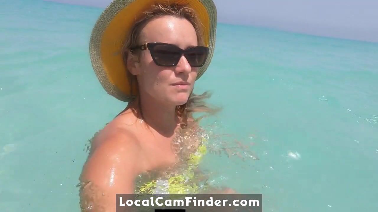A daring blonde Russian amateur with a big ass goes for a swim in the Atlantic Ocean in Cuba, baring it all in public with a bold exhibitionist streak.