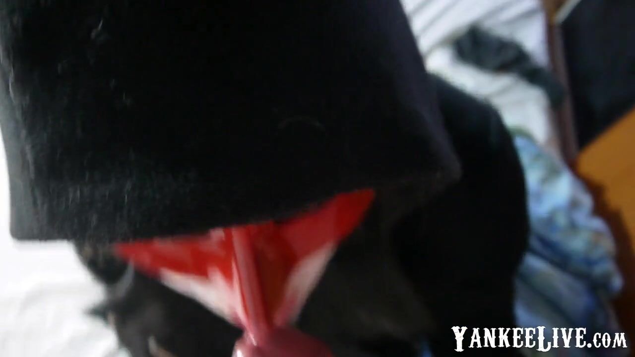 A sexy redhead vampire babe in a Halloween mask is ready for some kinky BDSM fun, but instead of blood, she gets a surprise - a hard cock to suck and please in this POV amateur video.