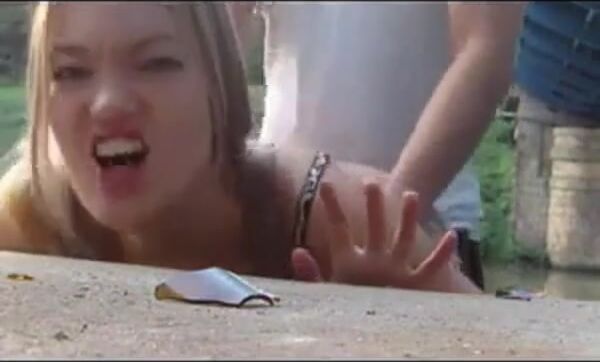 A hot German amateur blonde with amazing tits enjoys a quick outdoor fuck by the water, showcasing her sexy body and intense passion.