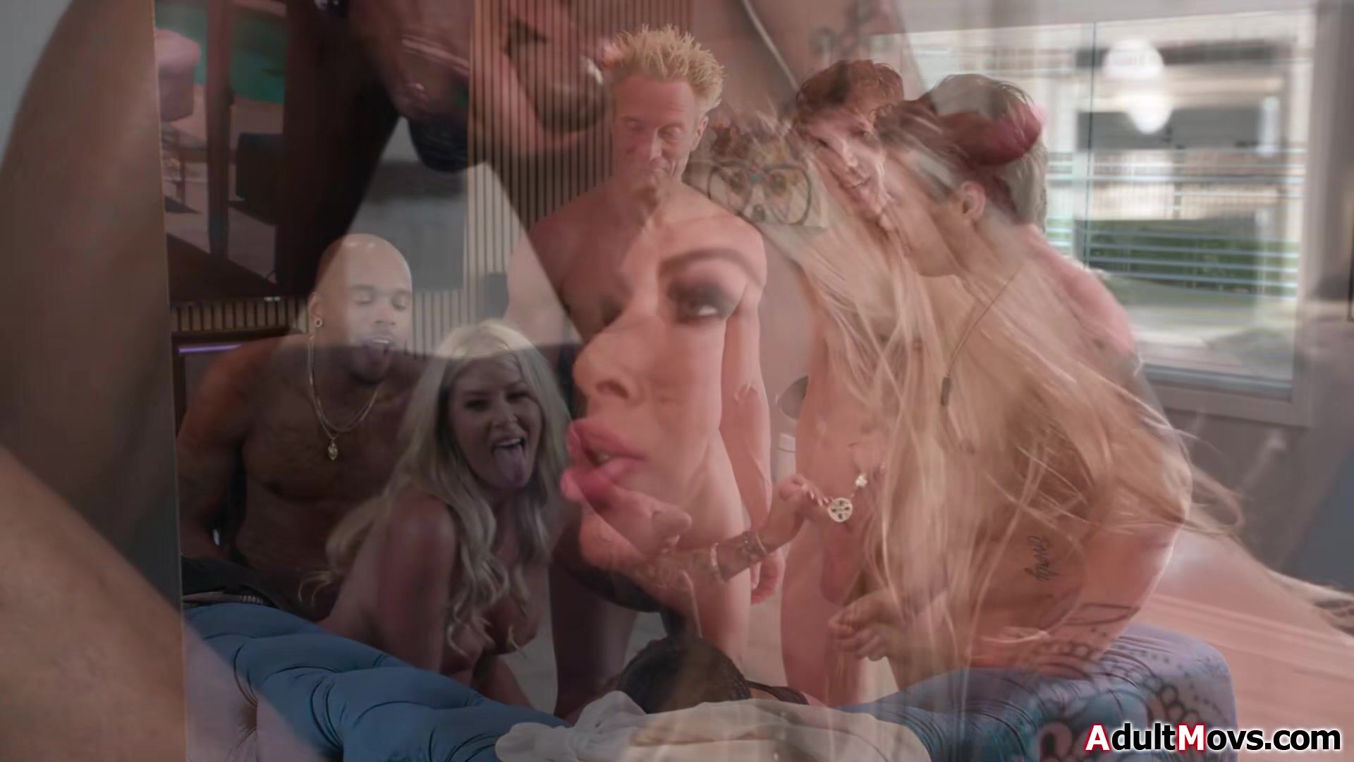 Busty wife Lolly Dames is allowed to cheat once.Her husband walks in and sees she has five guys fucking her.He joins and the big tits milf is facefucked while being banged by big cocks and bbcs.The blonde cougar gets dped and double pussy fucked