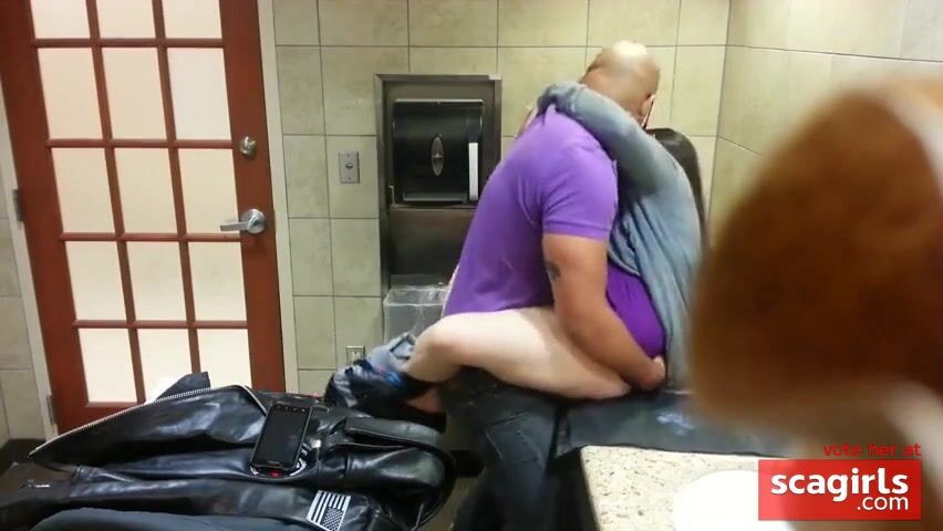 Couple went into the family restroom and fuck untill he bust a nut inside of her.