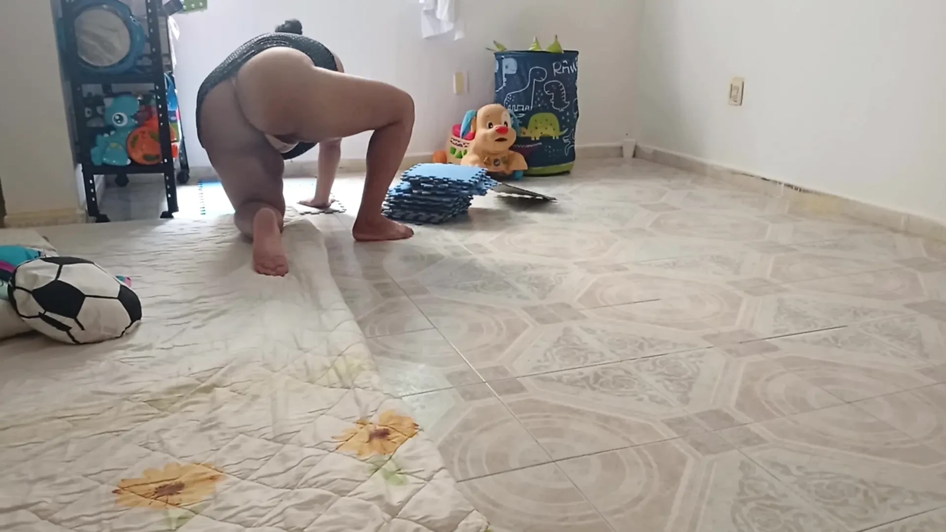 Chubby mom records herself and sends me a video cleaning in a thong 6