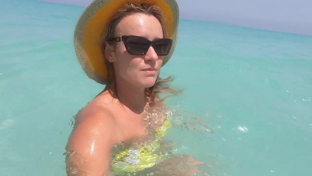A daring blonde Russian amateur with a big ass goes for a swim in the Atlantic Ocean in Cuba, baring it all in public with a bold exhibitionist streak.