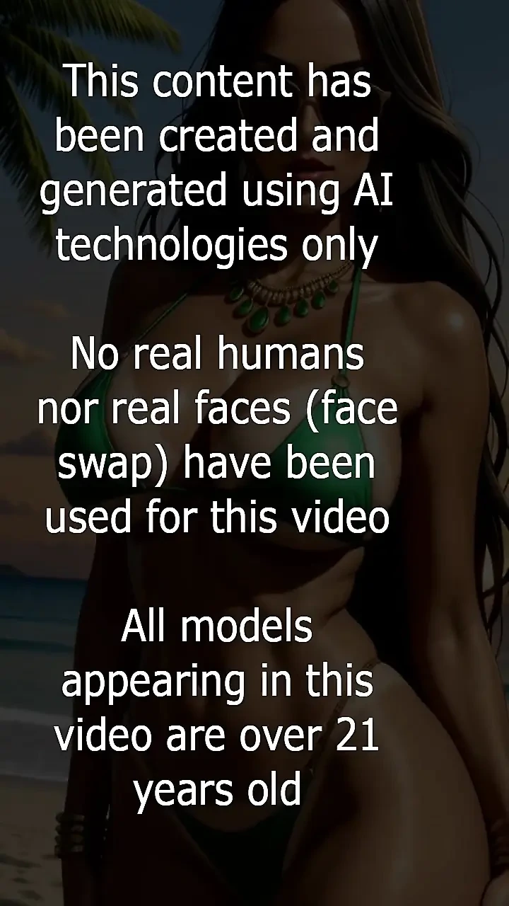 hot woman with bikini on beach. Ai generated Video divided with many beautiful short sexy scene with relaxing music. No real humans nor real faces (face swap) have been used for this video. All models appearing in this video are over 21 years old