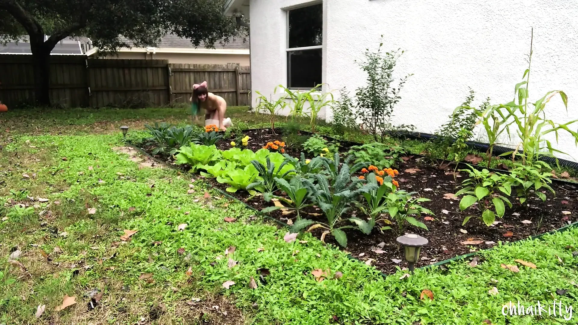 Meow! I wandered into a pretty green garden! I crawled on all fours through the veggies! I sniffed and rubbed my ears & body against the leaves of the plants. I even found catnip! I got so dirty in the garden soil! When i was passing through the kale, the leaves felt really nice against my kitty titties! I started getting really turned on by the feel of it! I purred and got excited! I had the idea to rub my pussy against the kale. I was right, it felt amazing!!! I rubbed my pussy faster and harder against it, making my ass shake and twerk. I meowed & smiled with pleasure! I spanked myself with my fluffy pink tail! I kept rubbing and finally came on the kale! It was the best orgasm i've ever had! Fur real! After that, i crawled around the garden a little more, smelling more veggies and weaving through the corn!