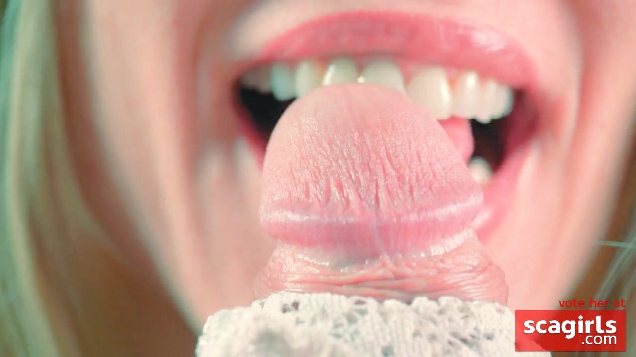 Close-up Tongue Teasing Blowjob by Blonde Amateur Milf