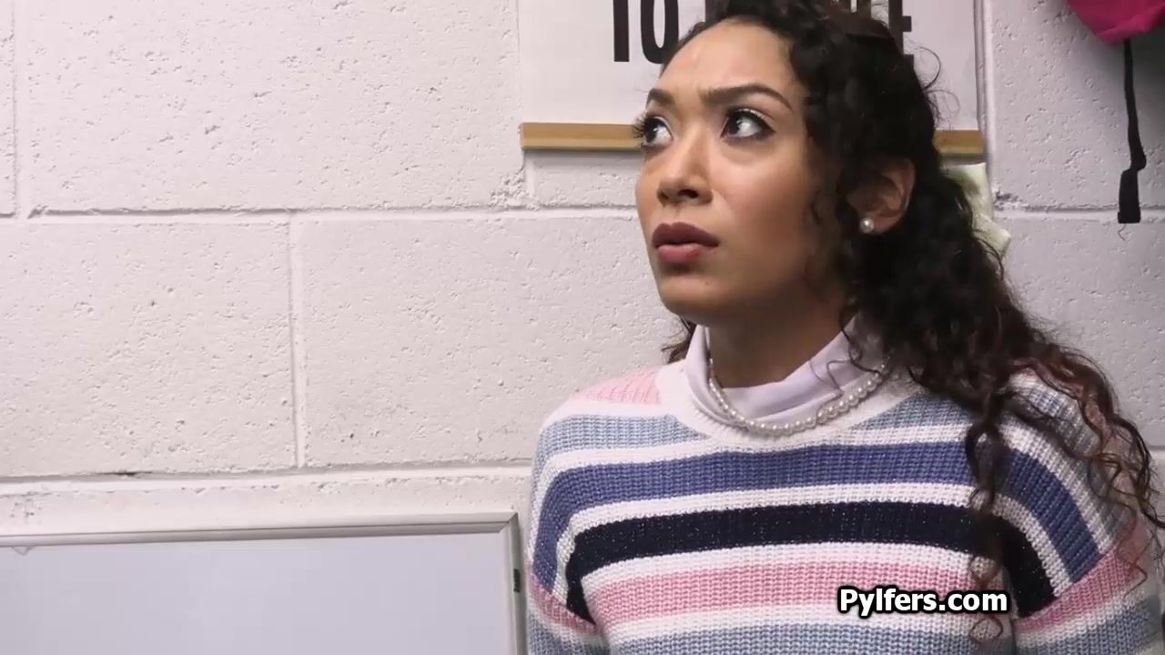 Throat fucking curly Latina for stealing porn DVDs