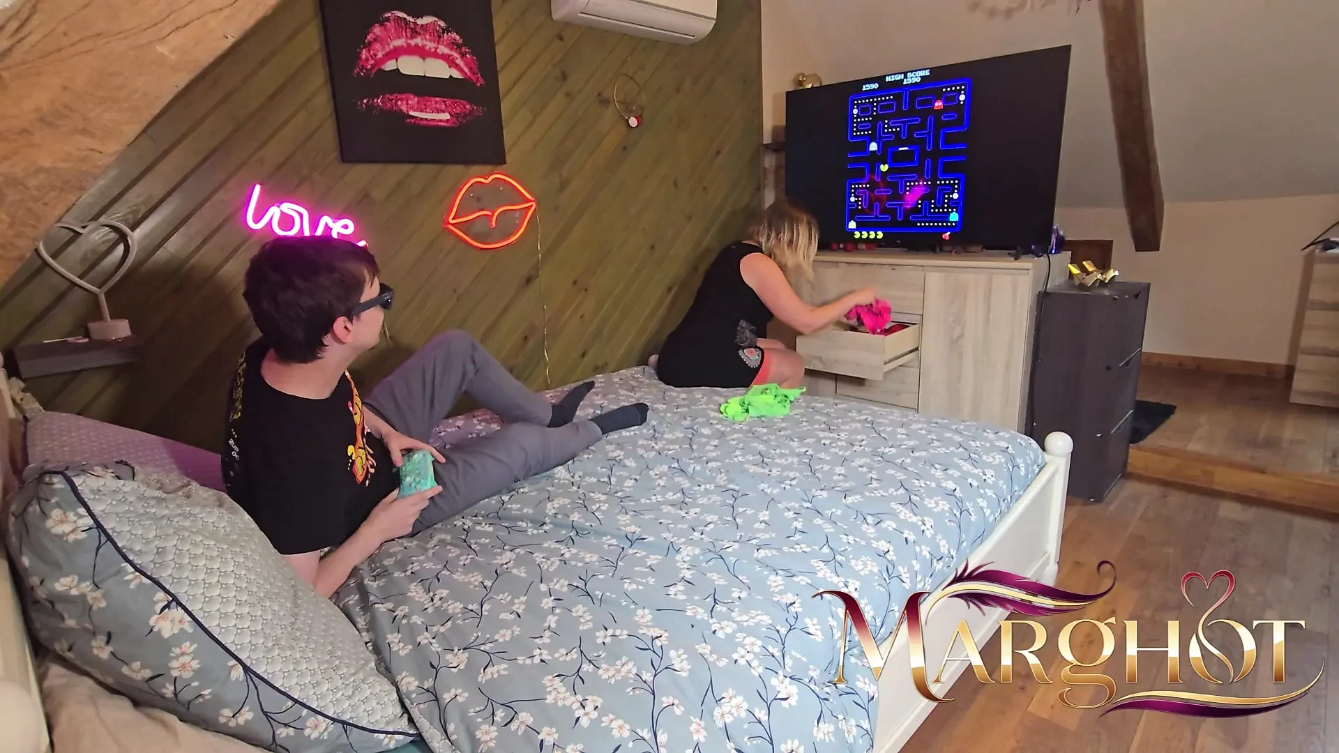 Stepmom Heats Up Stepson During Pac-Man: He Fucks Her And Fills Her Pussy Before Licking A stepson is engrossed in Pac-Man when his stepmom comes in, changing panties in front of his eyes, her curves driving him crazy. Overexcited by his look, she pulls him onto the bed. He lets go, fucking her wildly, his moans filling the room as he fills her soaked pussy with hot cum. Then he feasts, licking his juice mixture greedily.