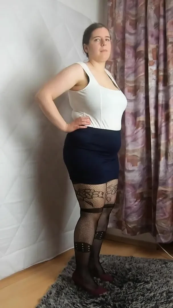 Mini skirt heels and fishnet stockings unensored
