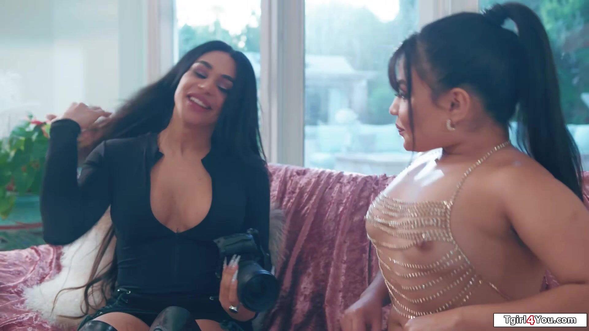 Busty big cock tgirl photographer Eva Maxim normally doesnt do this kind of thing but is attracted to her nude model Summer Col and wants to kiss her.The petite latina deepthroats the shemales big tranny cock and is pussy licked before shes fucked