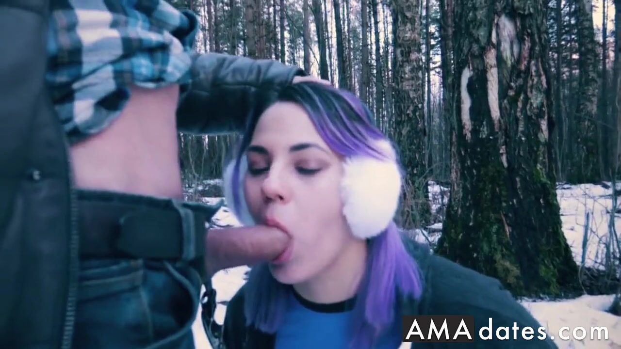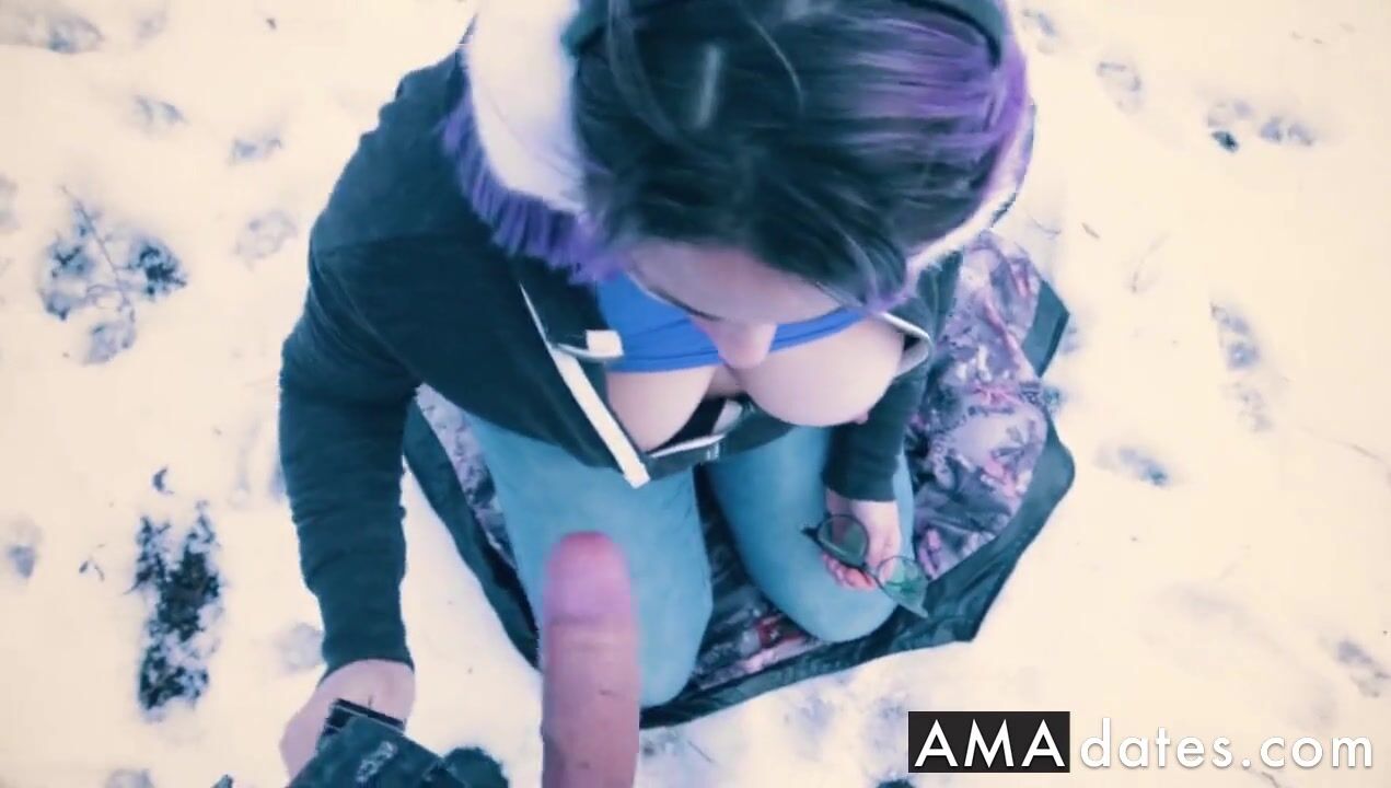 A busty amateur teacher with magic skills takes a walk in the snow and gives an outdoor POV blowjob, ending with a massive cum load in her mouth.