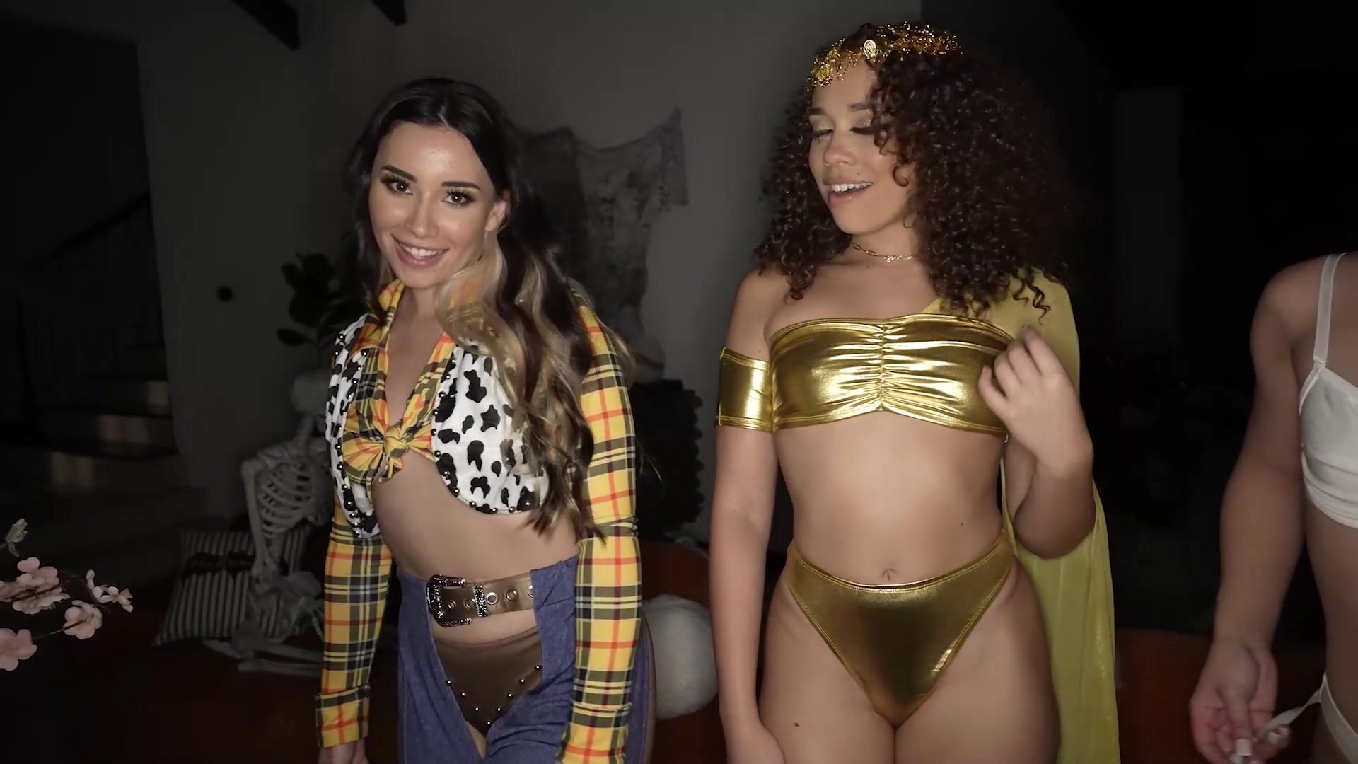 Willow Ryder, Tommy King, and Aria Lee are dressed up in their Halloween costumes and ready to play with a big black cock!